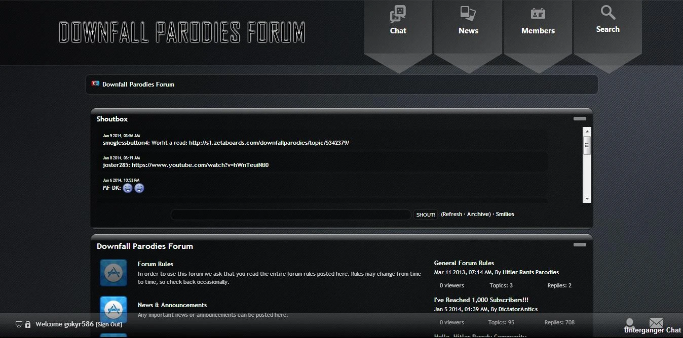 - Works in a similar way to the Downfall Parodies Forum, with an additional board for reporting site issues.