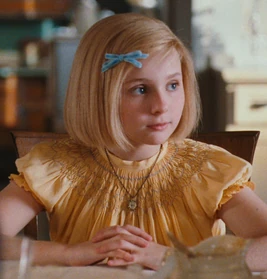 It was also mentioned (and implied) by Burgdorf that Kit's bobbed hair is actually a wig, a nod to the real-life American Girl dolls in which the hair isn't hard-rooted and are glued to the head, and to Abigail Breslin who had to wear a blond wig for her role, being that she has darker hair than her character (although dyeing it can also be an option). Burgdorf also sneered that it was Jodl who deserved to wear Kit's headpiece.
