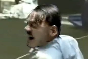 Screencap from KakashiBallZ's Fegelein Tampers with Hitler's Lawnmower!!. Notice the interlace combing artefact as seen on Hitler's head.