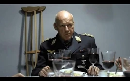Von Greim is regarded by some as a dumb character in the same league as Günsche. He is seen in the Hitler Eating Scene where he eats on the table listening Hitler's fairy tales. Although he acts like he believes Hitler, Von Greim is actually aware that the Luftwaffe is basically non-existent now, as can be noted by his final words. He is sometimes seen stop chewing, which would indicate he shows some interest (this happens only in the theatrical version). He also appears in other scenes, such as the Hitler meets Greim and Reitsch.