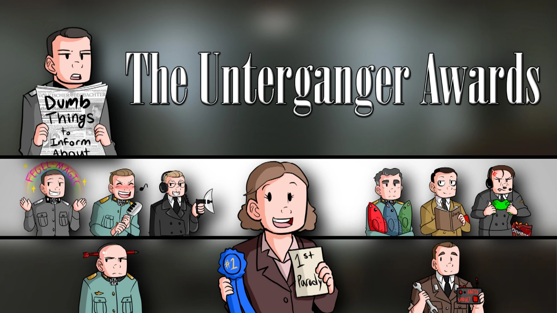 The Unterganger Awards (UA) was a monthly award show managed by BewegungsunFISH (previously by JennieParker87), with Ako675 as assisting manager. Parodies are nominated throughout the month, within 12 (14) categories, on the untergangersawards.com website. A team of judges then select the winners. The winning parodies are then presented in a video made by BewegungsunFISH.